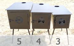 The Wilderness 4 stove is 35% larger than the Wilderness 3 model and only costs $50 more. The Wilderness 4 tent stove will provide significantly more heat and will hold heat much longer than the Wilderness 3. If you are unsure of which stove to purchase or like longer burning and more heating capability - the Wilderness 5 is recommended. The Wilderness 5 will burn all night with quality dry hard wood.